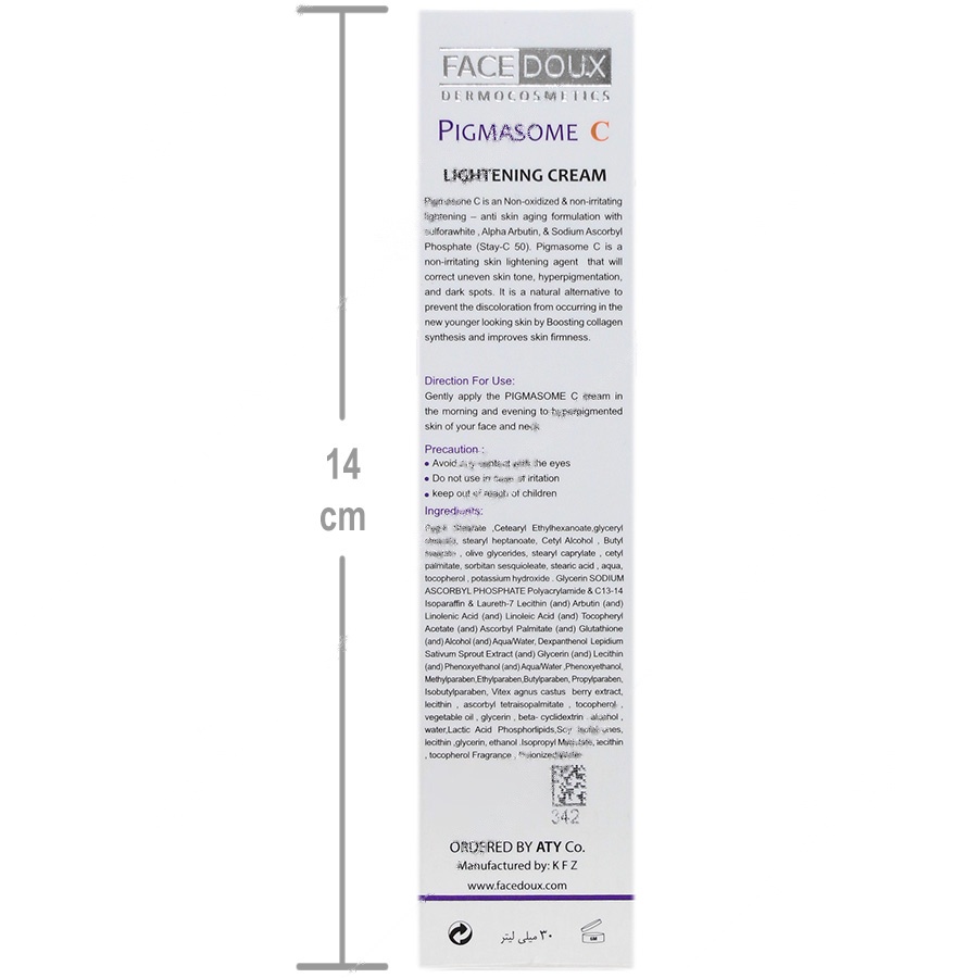 کرم روشن کننده پیگمازوم سی از برند فیس دوکس، یک محصول ضد لک و روشن کننده قوی است که به ویژه برای رفع مشکلات رنگدانهای پوست طراحی شده است. این کرم با فرمولاسیون خاص خود، به کاهش لکهای ناشی از پیری، آفتاب و دیگر عوامل مؤثر کمک میکند و پوست را به طرز چشمگیری روشنتر میسازد.ویژگیهای برجسته