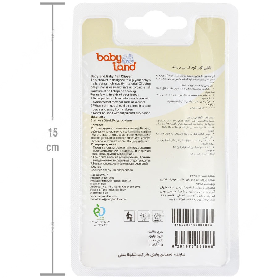 ناخنگیر کودک بی بی لند 349 باید در مکان امن و دور از دسترس کودک نگهداری شود تا از هرگونه خطر احتمالی جلوگیری شود.