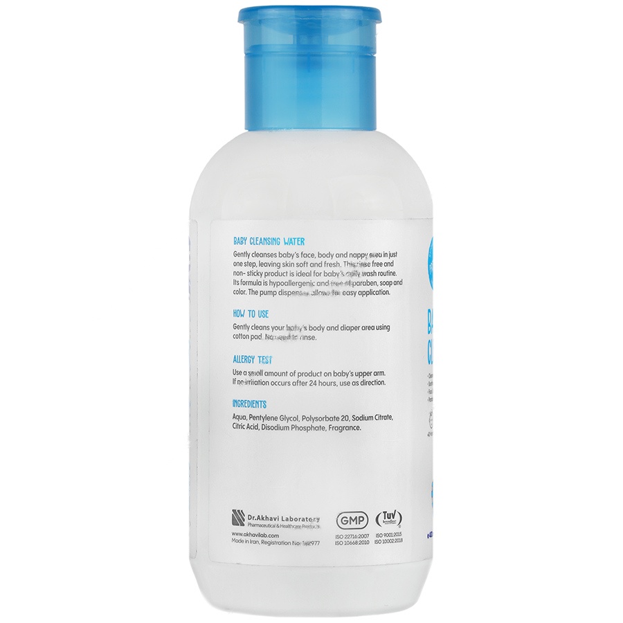 این محلول در بطریهای پلاستیکی با حجم 400 میلی لیتر و تحت نظر شرکت دکتر اخوی تولید شده است. برای استفاده، کافی است با یک پد پنبهای آغشته به محلول، صورت، بدن و ناحیه پوشک نوزاد را به آرامی پاک کنید و نیازی به شستشو نیست. در صورت بروز هرگونه حساسیت، مصرف را متوقف کرده و با پزشک کودک مشورت کنید.