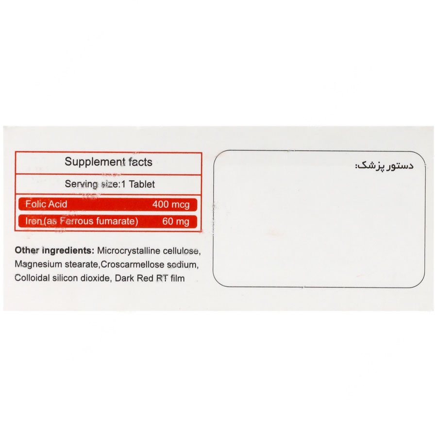 - حاوی 60 میلی گرم آهن و 400 میکروگرم فولیک اسید برای بهبود خونسازی.