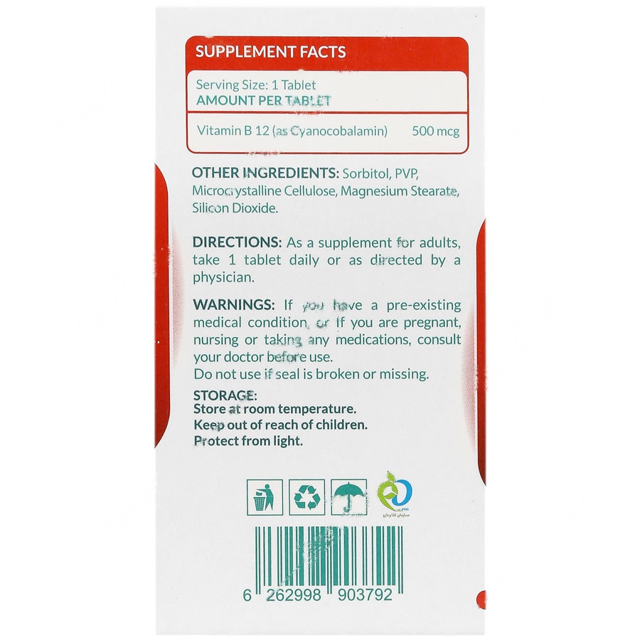 - هر قرص حاوی 500 میکروگرم ویتامین ب12 برای تامین نیاز بدن.