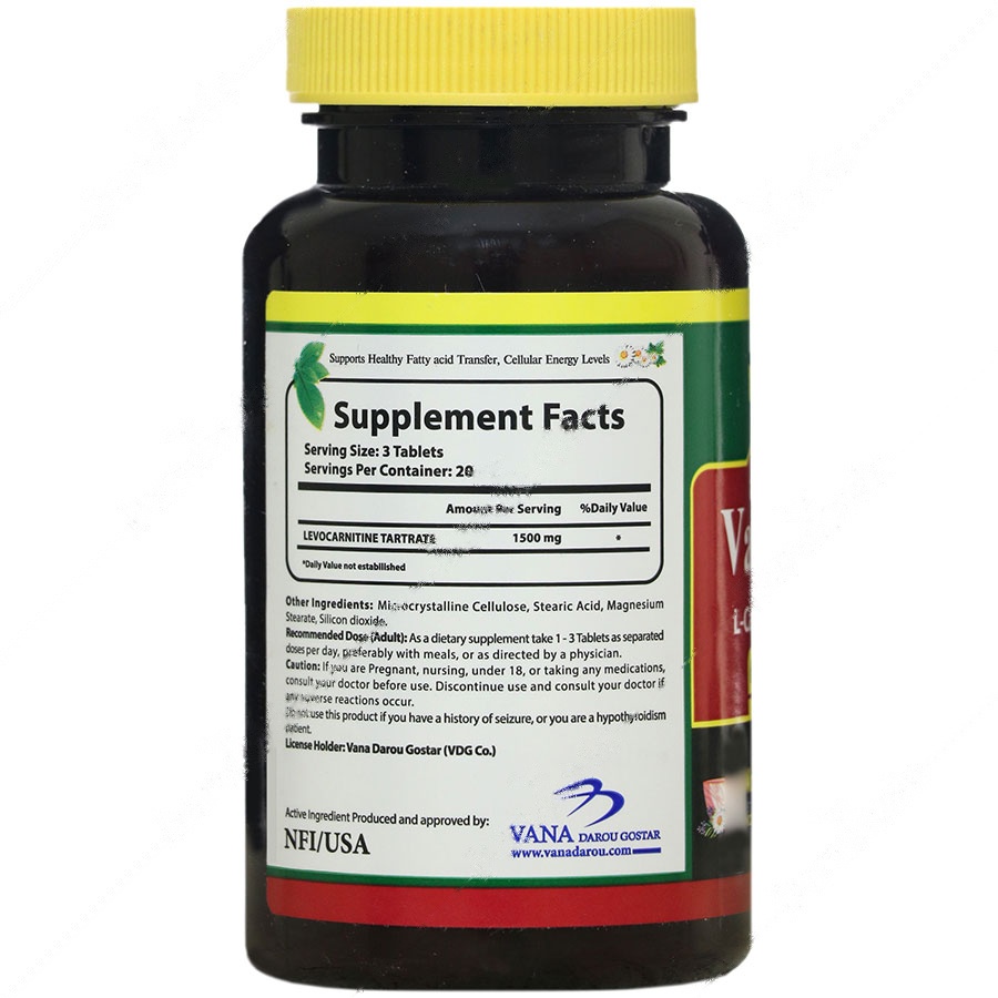 - حاوی 500 میلیگرم لووکارنیتین تارترات در هر قرص برای بهبود متابولیسم چربیها.