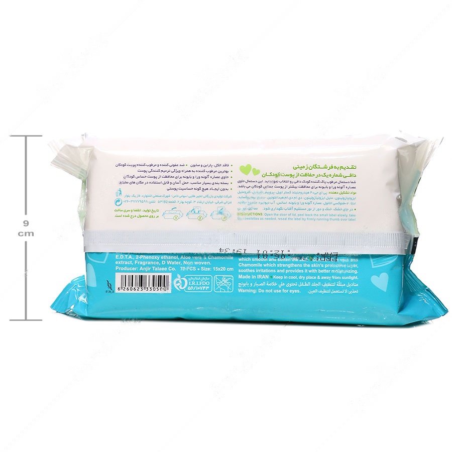 دستمال مرطوب دافی با خاصیت ضدالتهابی و ضد باکتریایی، به آرامی آلودگیها را از روی پوست کودک پاک میکند و رطوبت لازم را به آن میرساند. طراحی درب این محصول به گونهای است که از خشک شدن دستمالها جلوگیری میکند و میتوانید به راحتی آن را در کیف خود قرار داده و در مکانهای مختلف استفاده کنید.